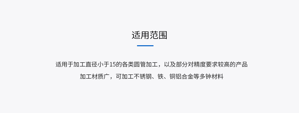 適用于加工直徑小于15的各類圓管加工,以及部分對精度要求較高的產(chǎn)品。加工材質(zhì)廣,可加工不銹鋼、鐵、銅鋁合金等多鐘材料。 本機(jī)針對醫(yī)療行業(yè)需求優(yōu)化,可加工醫(yī)療器械使用的各類管...